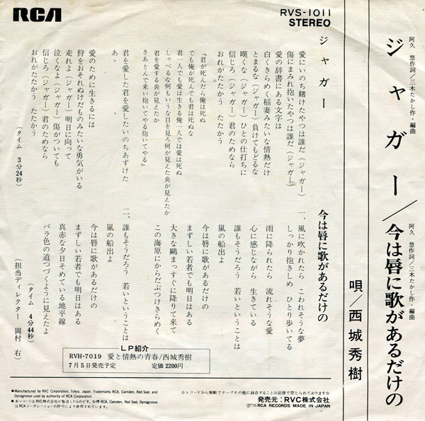 レーベル : RCA,RCA – RVS-1011, JPBO-0233