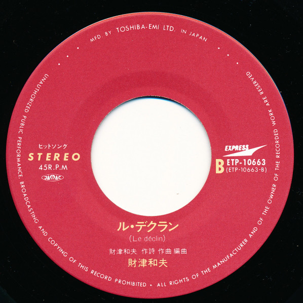 フォーマット : Vinyl, 7″, 45 RPM, Single, Stereo