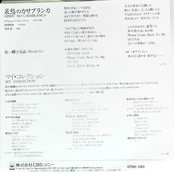 郷ひろみ – 哀愁のカサブランカ = Casablanca (7″, Single)