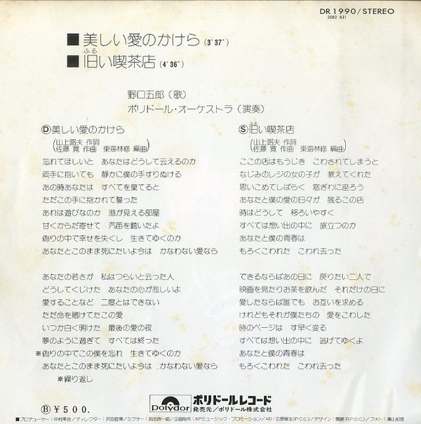 野口五郎 – 美しい愛のかけら (7″, Single)