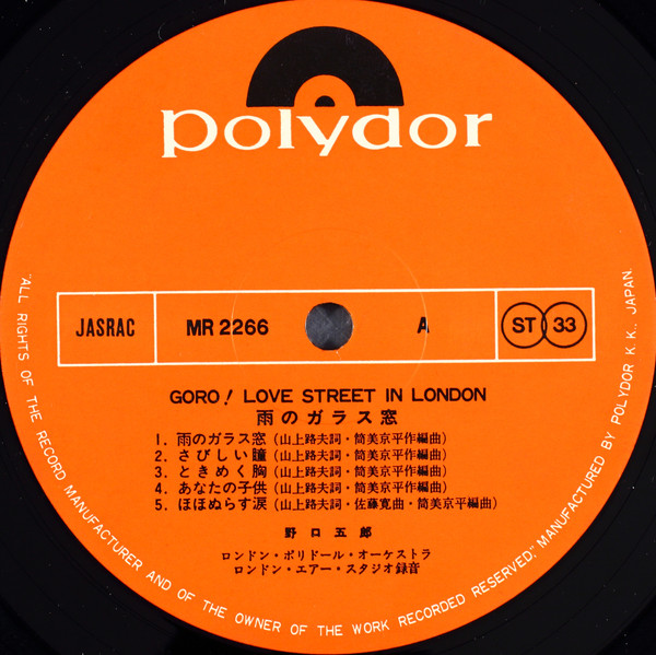 野口五郎 – Goro! Love Street In London -雨のガラス窓- (LP, Album)