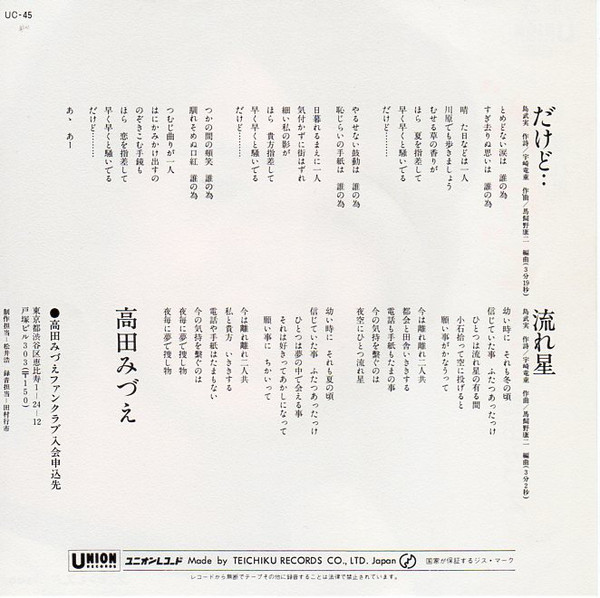 フォーマット : Vinyl, 7″, 45 RPM, Single, Stereo