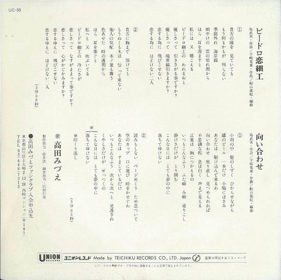 高田みづえ – ビードロ恋細工 (7″, Single)