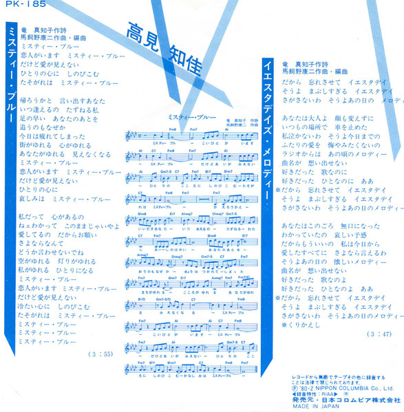高見知佳 – ミスティー ブルー (7″, Single, Promo)