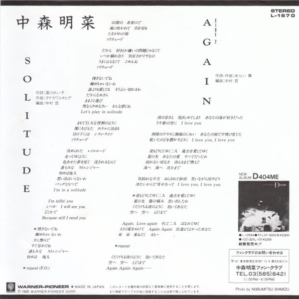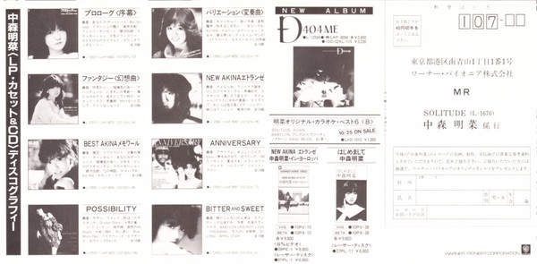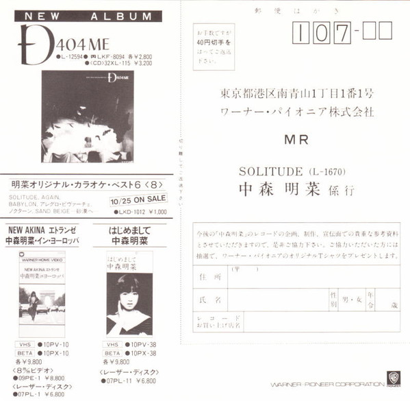 With foldout survey postcard and point ticket for ’85 Akina Nakamori Grand prix.