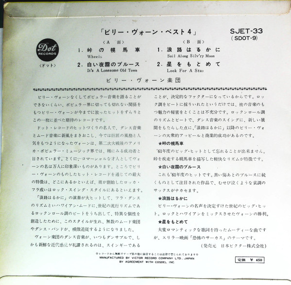 Billy Vaughn And His Orchestra = ビリー・ヴォーン楽団* – Four By Billy = ベスト4 (7″)