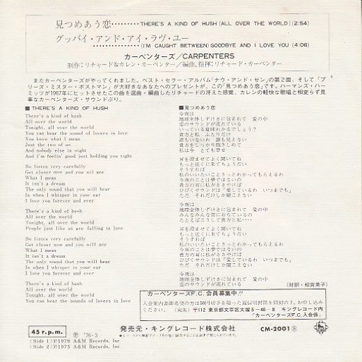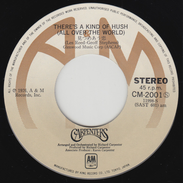 Carpenters – 見つめ合う恋 = There’s A Kind Of Hush (7″, Single)