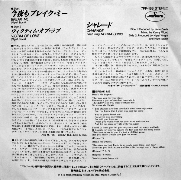 フォーマット : Vinyl, 7″, 45 RPM, Single