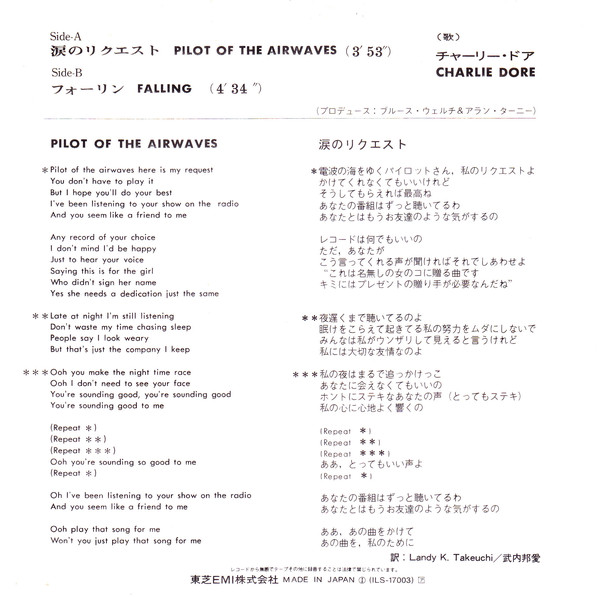Charlie Dore – Pilot Of The Airwaves (7″, Single)