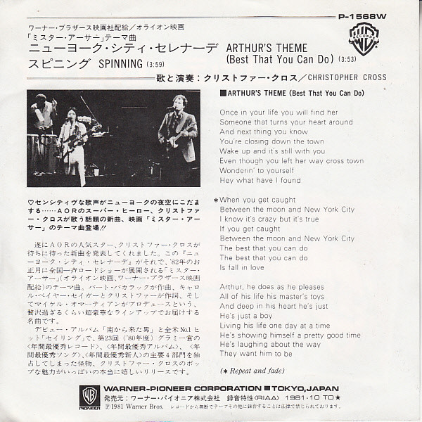 Christopher Cross – Arthur’s Theme (The Best That You Can Do) (7″, Single)