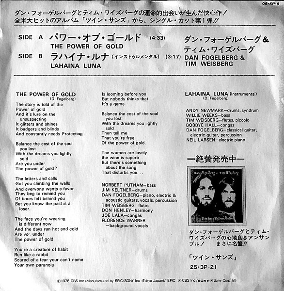 Dan Fogelberg & Tim Weisberg – The Power Of Gold (7″, Single)