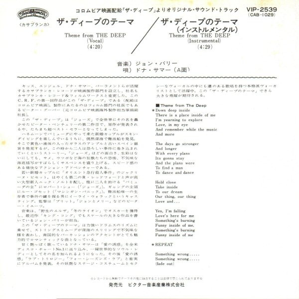 Donna Summer – ザ・ディープのテーマ = Theme From The Deep (Down Deep, Inside) (7″, Single)