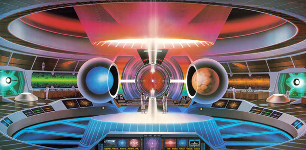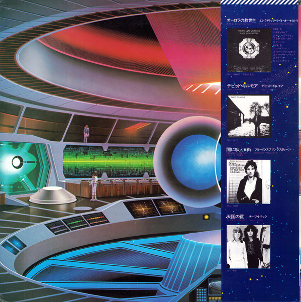 Released with obi, insert, two printed thin cardboard lyric inner sleeves, fold-out poster with band member portraits, and cardboard ELO space station insert (the individual parts “punch-out” like paper dolls to form a cardboard space station with ELO logo and band name on it).