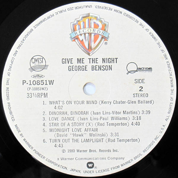 Made by Warner-Pioneer Corporation, Japan under license from Warner Bros. Records, Inc. U.S.A.
