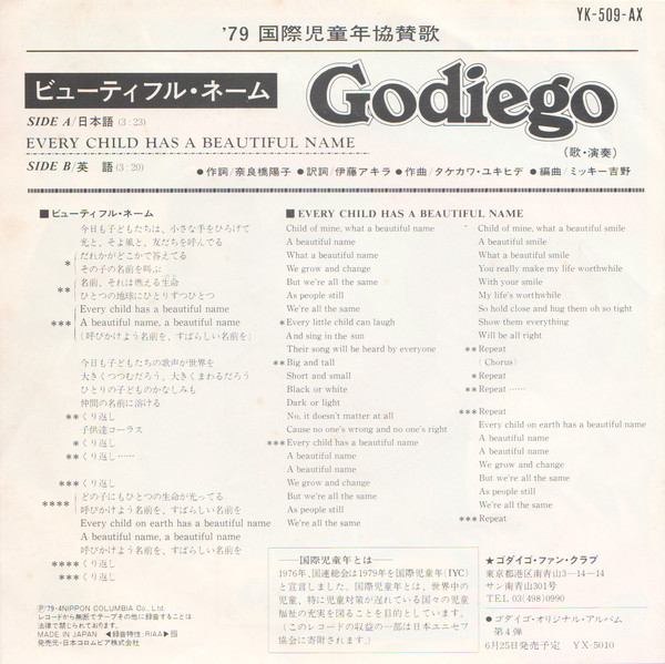 Godiego = ゴダイゴ – ビューティフル・ネーム = Every Child Has A Beautiful Name (7″, Single)