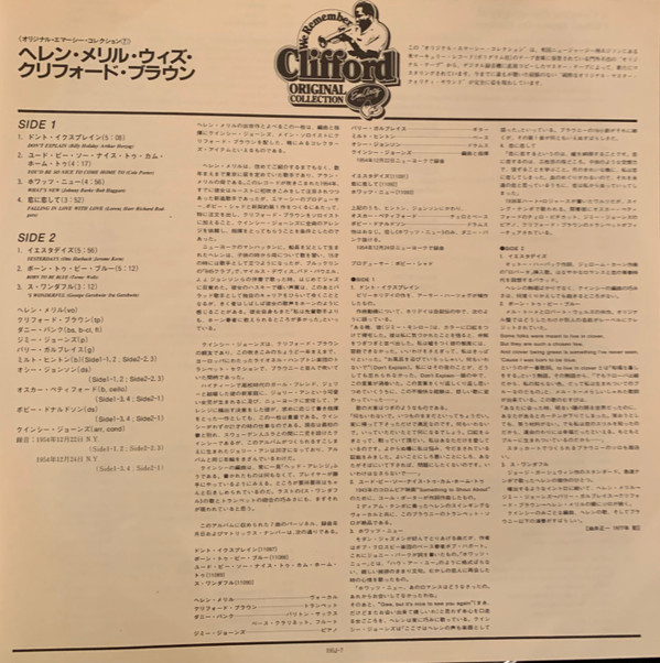 Comes with lyric insert in English that also has a Clifford Brown discography.