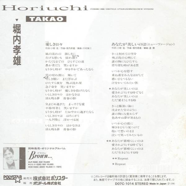 堀内孝雄 – 愛しき日々 (7″, Single)