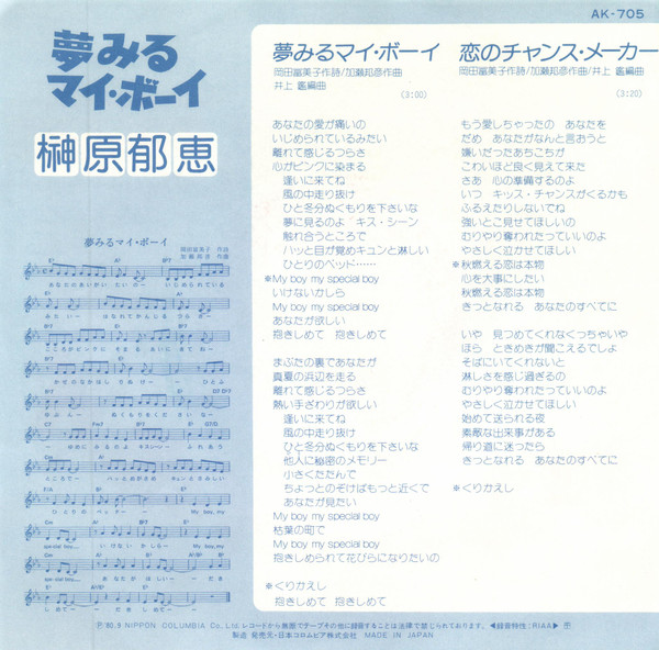 Ikue Sakakibara – 夢みるマイ・ボーイ (7″, Single)