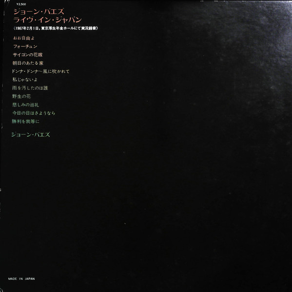 Joan Baez – Live in Japan (LP, Album, Gat)