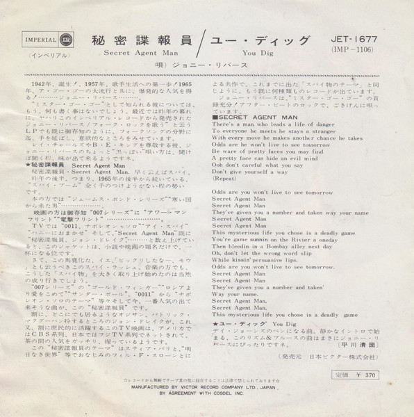 Johnny Rivers – Secret Agent Man / You Dig (7″)