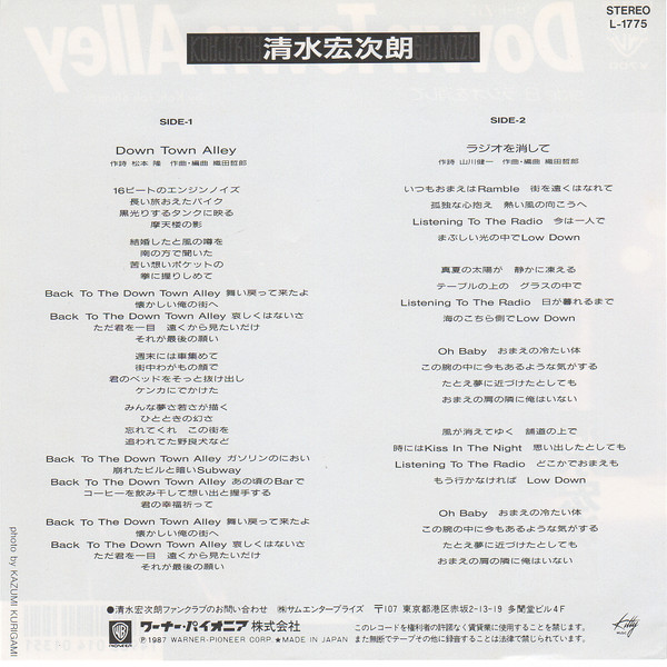 Kojiroh Shimizu = 清水宏次朗 – Down Town Alley (7″, Single)