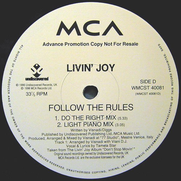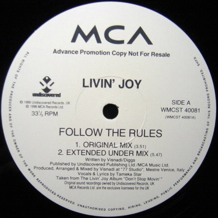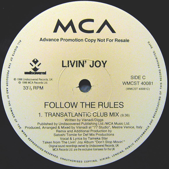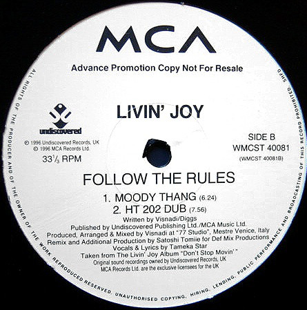 Livin’ Joy – Follow The Rules (Exclusive Mixes From Visnadi & Satoshi Tomiie) (2×12″, Promo)