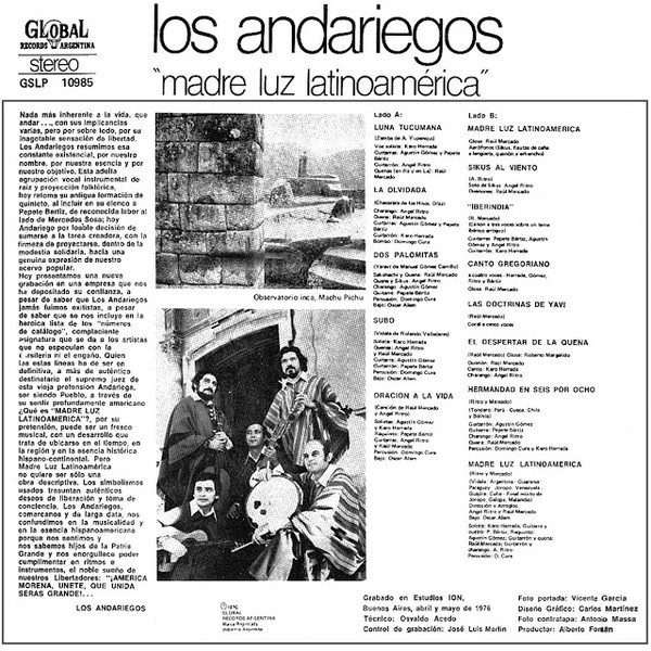 Los Andariegos – Madre Luz Latinoamérica (LP, Album)