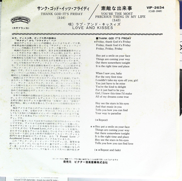 Love And Kisses – Thank God It’s Friday (7″)