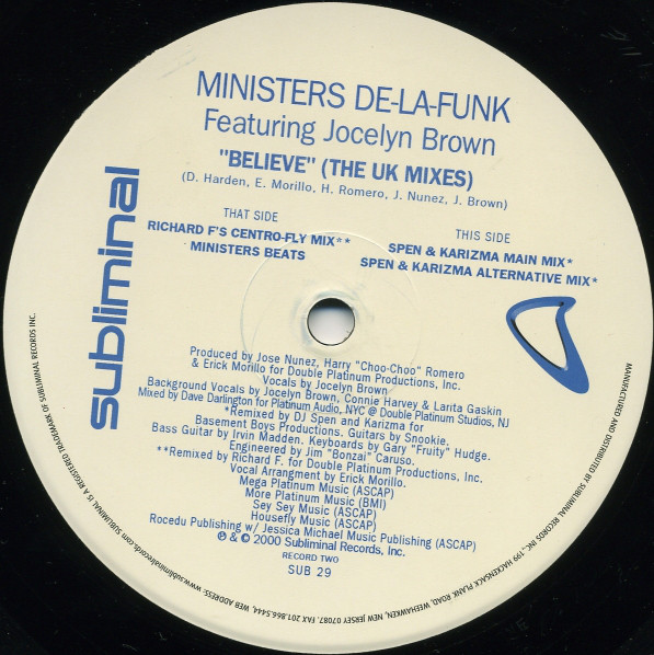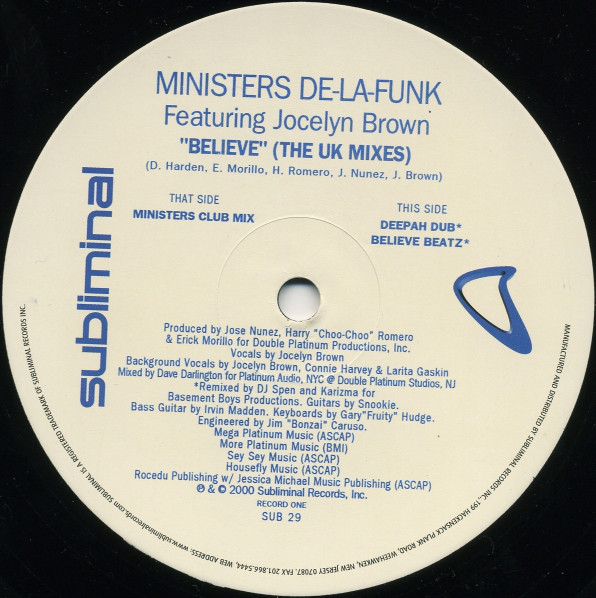 Ministers De-La-Funk Featuring Jocelyn Brown – Believe (The UK Remixes) (2×12″)