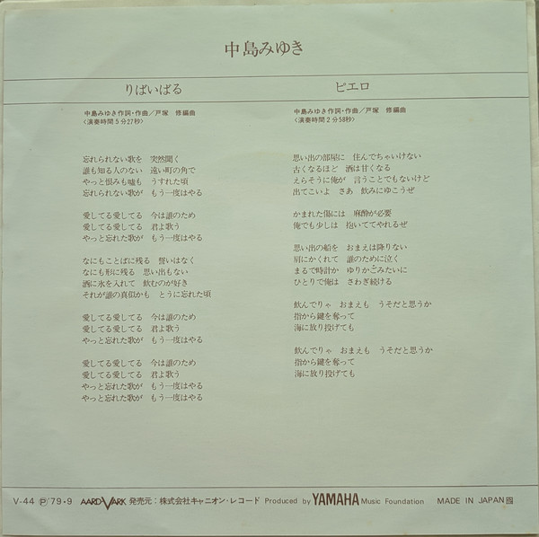 中島みゆき – りばいばる (7″, Single)
