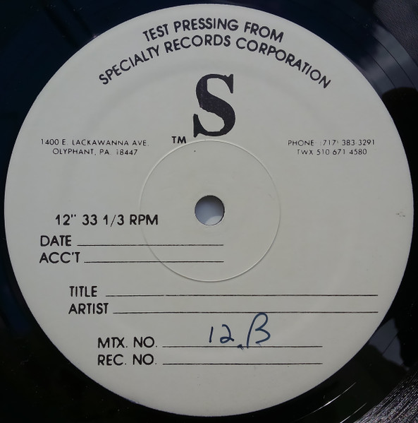 フォーマット : Vinyl, 12″, 33 ⅓ RPM, Test Pressing