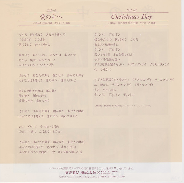 オフコース – 愛の中へ (7″, Single)