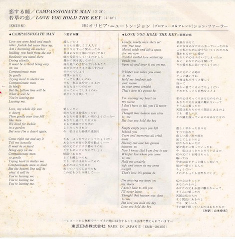 Olivia Newton-John – Compassionate Man = 恋する瞳 (7″, Single)