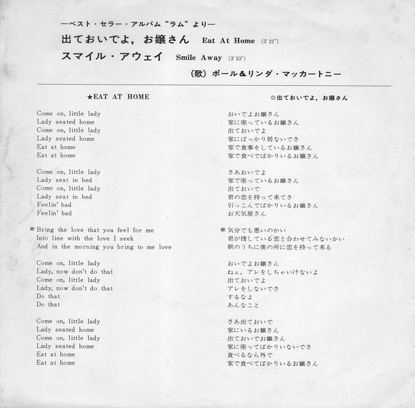 Paul And Linda McCartney – Eat At Home / Smile Away (7″, Single)
