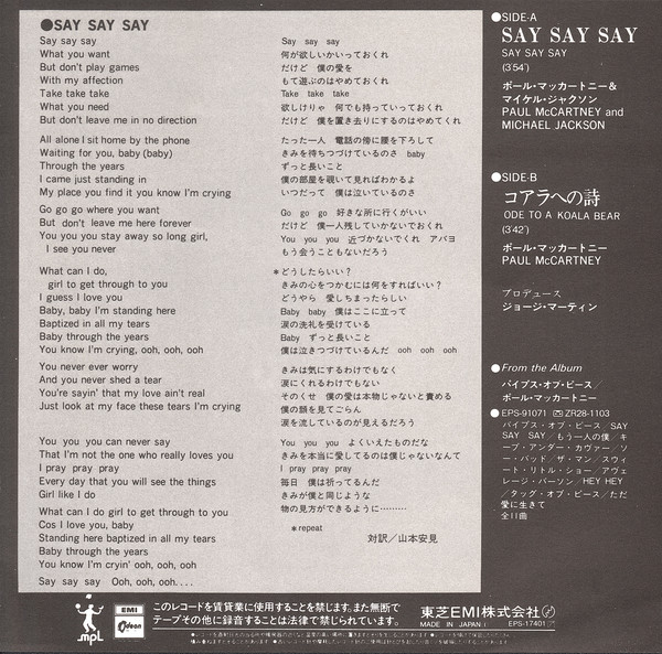 Paul McCartney And Michael Jackson – Say Say Say (7″, Single)
