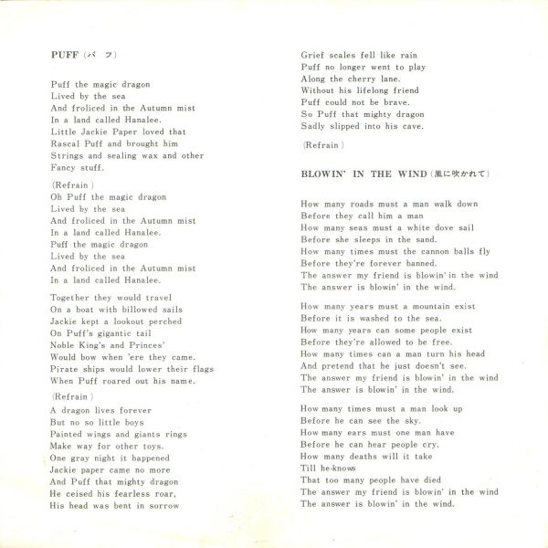 Peter, Paul & Mary – Puff / Blowin’ In The Wind (7″, Mono, Red)