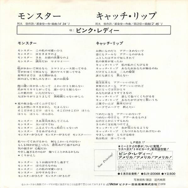 Pink Lady = ピンク・レディー – モンスター (7″, Single, Tra)