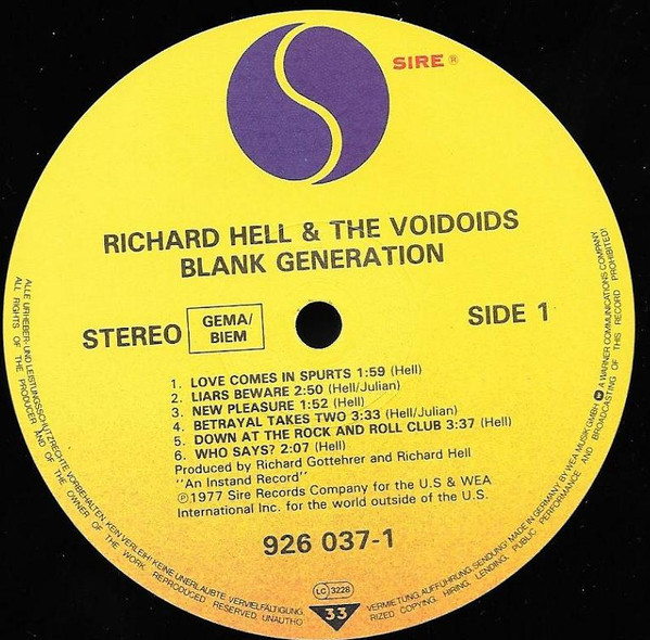 レーベル : Sire – 926 037-1