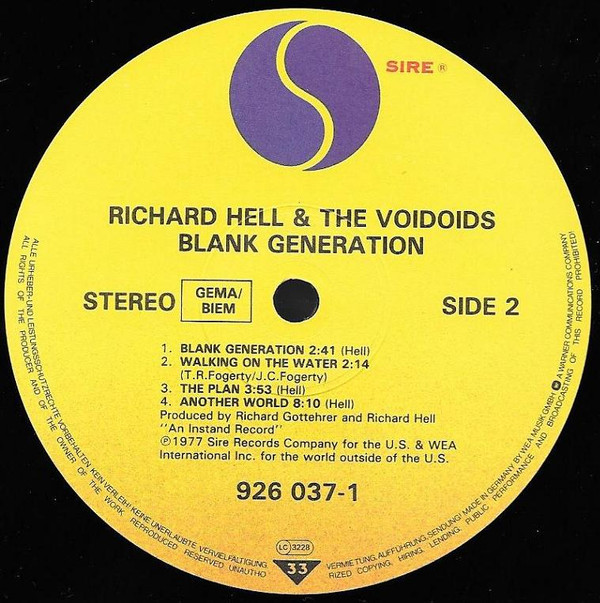 Richard Hell & The Voidoids – Blank Generation (LP, Album, RE)