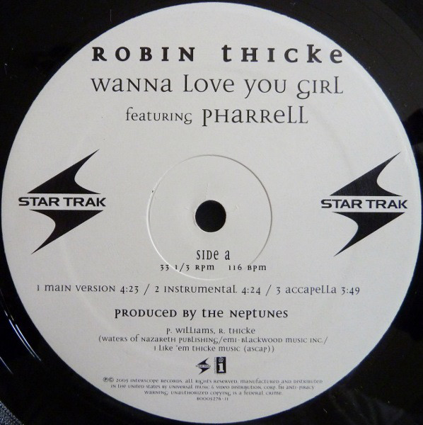 Robin Thicke Featuring Pharrell* – Wanna Love You Girl (12″)