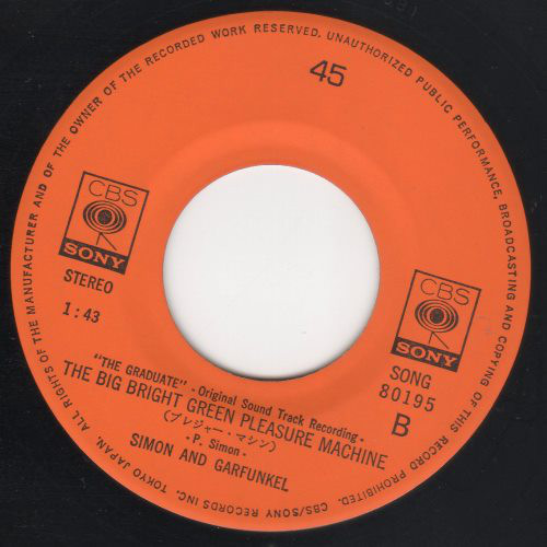 Simon & Garfunkel – “The Graduate” Original Soundtrack Recording = 映画「卒業」オリジナル・サウンド・トラック盤 (7″, Single)