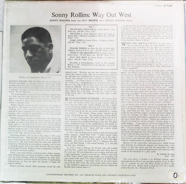 Sonny Rollins – Way Out West (LP, Album, RE, RP, Mon)
