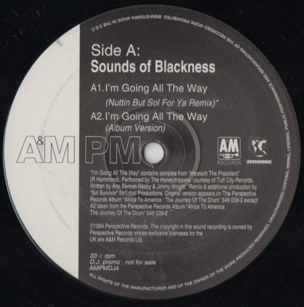 A1 remix & additional production for Tribal Productions. Original version appears on the Perspective Records album [url=http://www.discogs.com/Sounds-Of-Blackness-Africa-To-America-The-Journey-Of-The-Drum/master/141622]”Africa To America: The Journey Of The Drum”[/url] 549 009-2 except A2 taken from the Perspective Records album “Africa To America: The Journey Of The Drum” 549 009-2