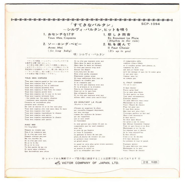 Sylvie Vartan – すてきなバルタン シルヴィ・バルタン、ヒットを唄う (7″, EP)