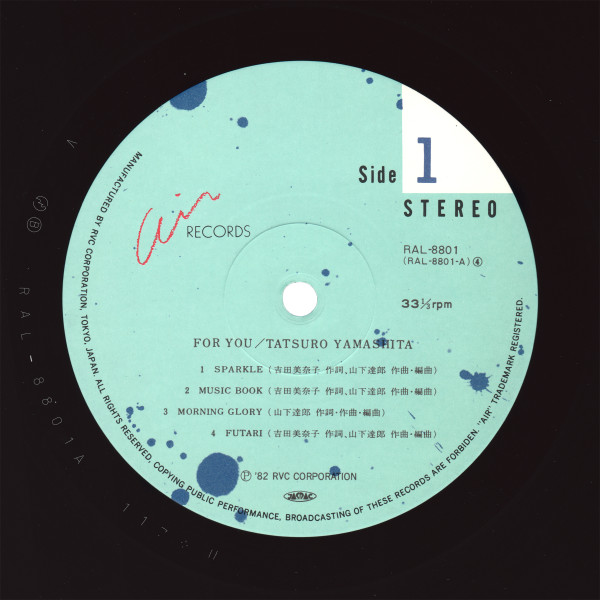 Official copies of this record were pressed by JVC on their “SuperVinyl” formula. These black records appear translucent brown when held to light. Side A has a 1.1 cm runout, and Side B has a 0.8 cm runout. Counterfeit copies do not have these characteristics.