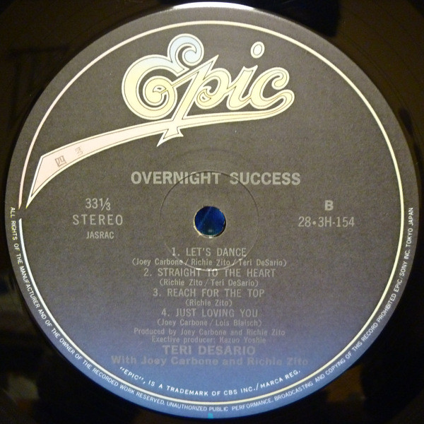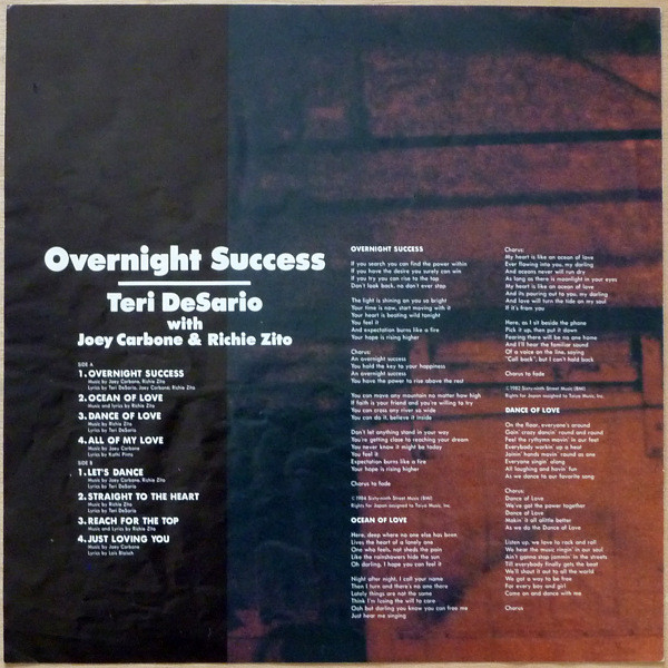 Teri DeSario With Joey Carbone & Richie Zito = テリー・テサリオ ウィズ カルボーン & ズィトー – Overnight Success = オーバーナイト・サクセス (LP, Album)