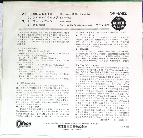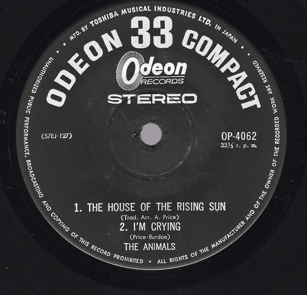 The Animals = アニマルズ – The House Of The Rising Sun = 朝日のあたる家 (7″)