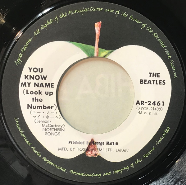 Apple / Toshiba-EMI Ltd. reissue with ¥500 picture sleeve and lyric insert, green Toshiba EMI company inner sleeve.