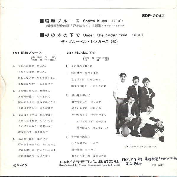 The Blue Bell Singers = ザ・ブルーベル・シンガーズ – 昭和ブルース = Showa Blues (7″, Single)