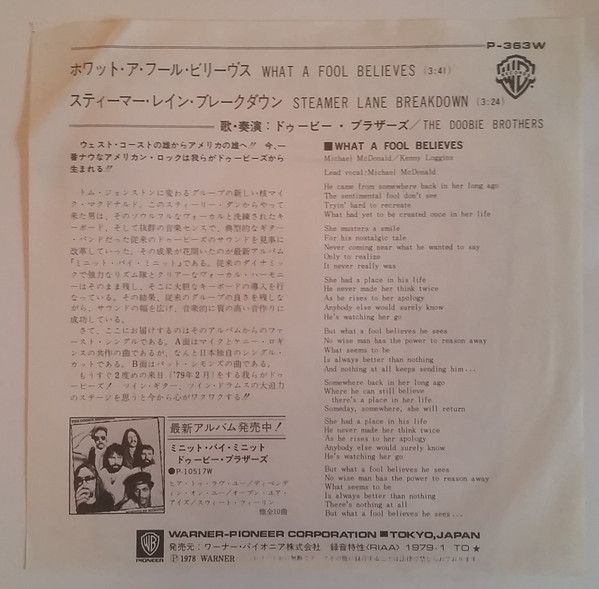 The Doobie Brothers = ドゥービー・ブラザーズ – What A Fool Believes = ホワット・ア・フール・ビリーヴス (7″, Single)